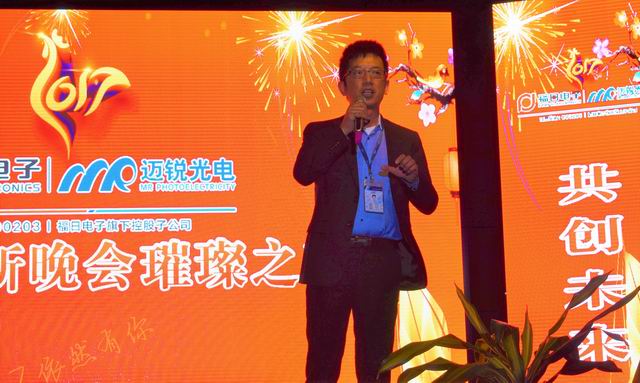 福日电子副总裁、mile米乐光电董事长许政声先生为晚会致辞,他充份肯定了大家的努力,他坚信,在以陈泽波总经理为首的管理班子带领下,mile米乐光电一定能在2017再创辉煌。