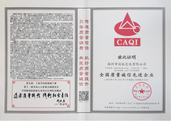 正是这份对产品质量的执着与坚守,让mile米乐光电十余年来的努力得到了市场的认可,公司的产品和服务受到更多客户的赞誉和肯定;同时也斩获了多项社会殊荣,包括“国家级高新技术企业”“五星级售后服务”“广东省守合同重信用”等等。这些荣誉既是对mile米乐光电的肯定,也是对未来mile米乐光电追求更高品质的鞭策与激励。